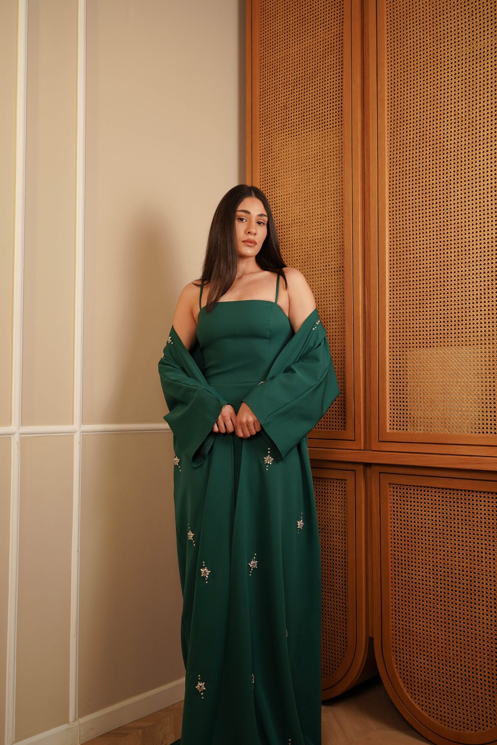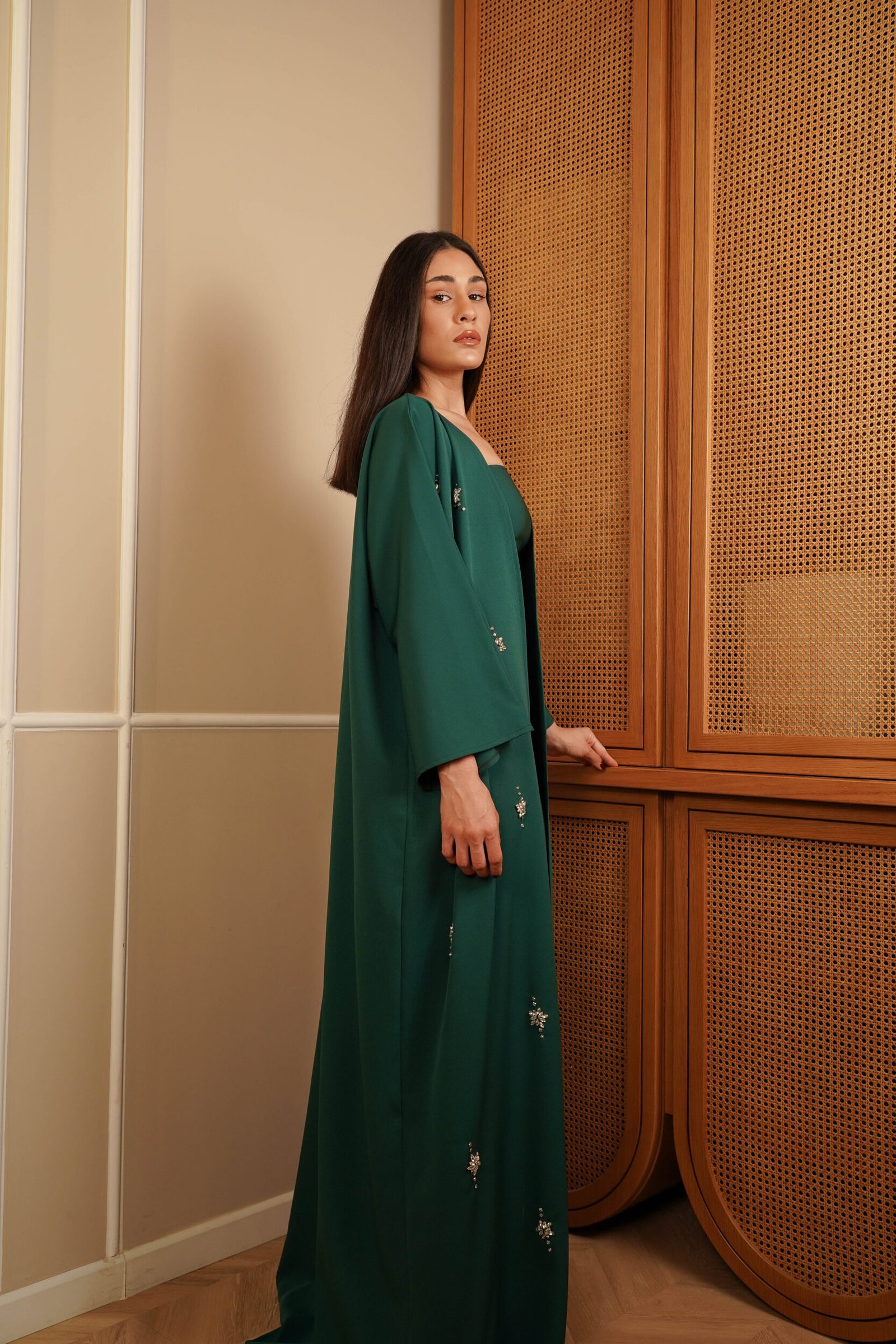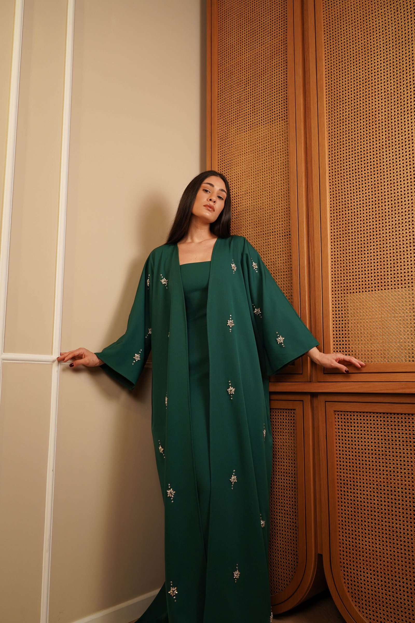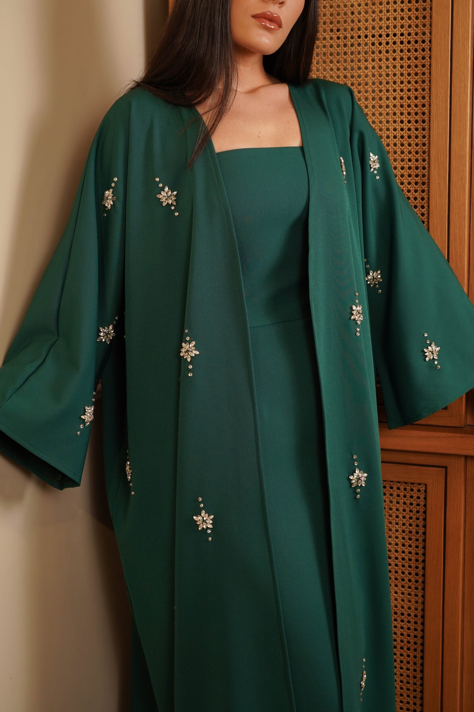 Emerald Royal Green Kaftan Hand Embroidery Real Swarovski Stones