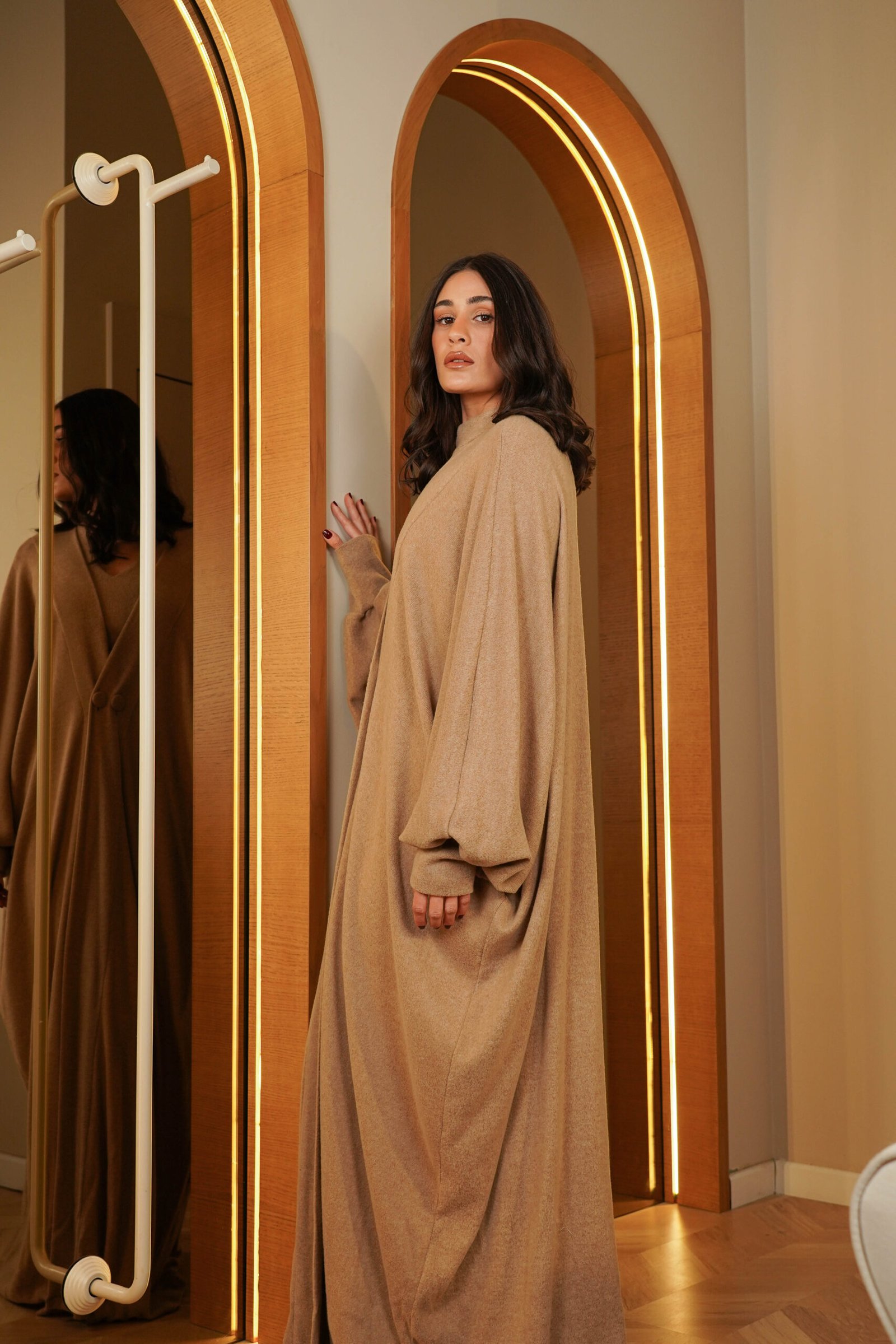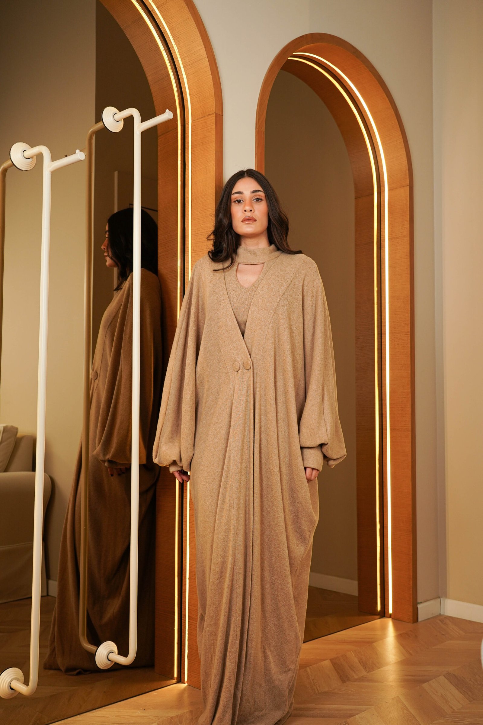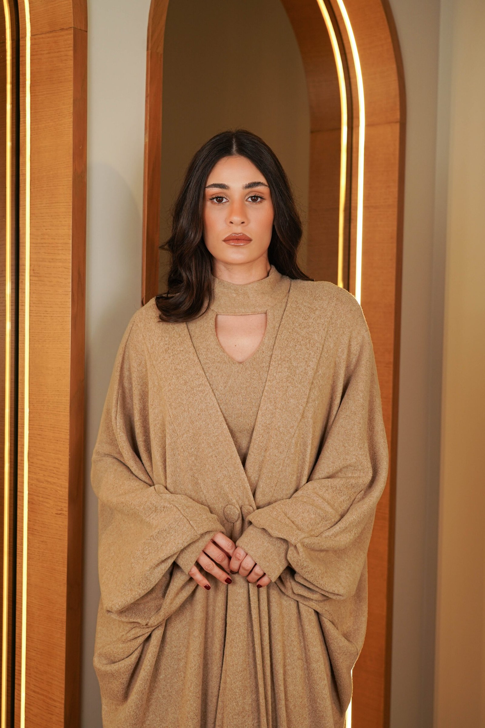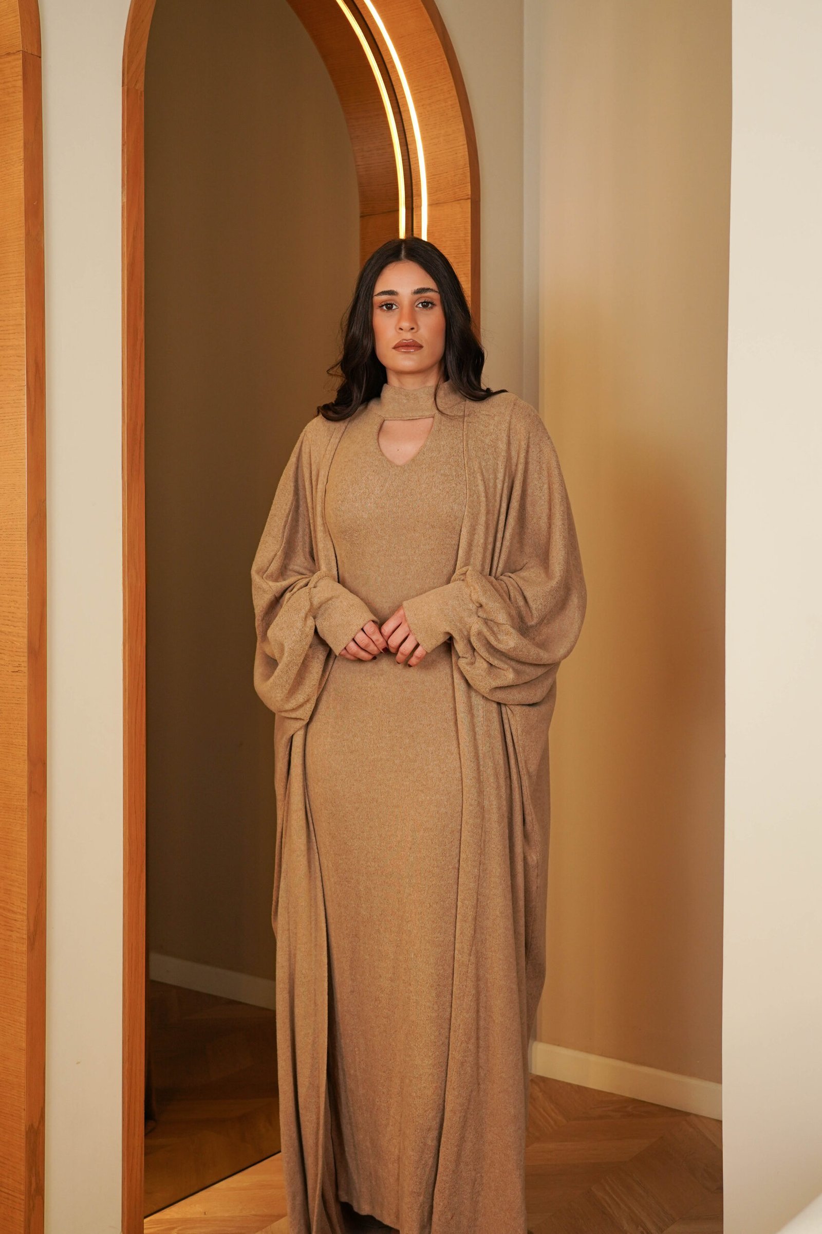 Knit kaftan with slim Dress in sand color